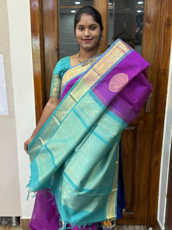 Silk Cotton Body Rich Buttas Purple And Teal(SCBRBS8)