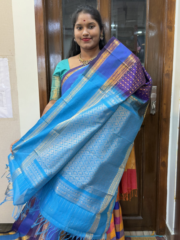 Silk Cotton Checked Buttas Violet And CS Blue(SCRBPV91)