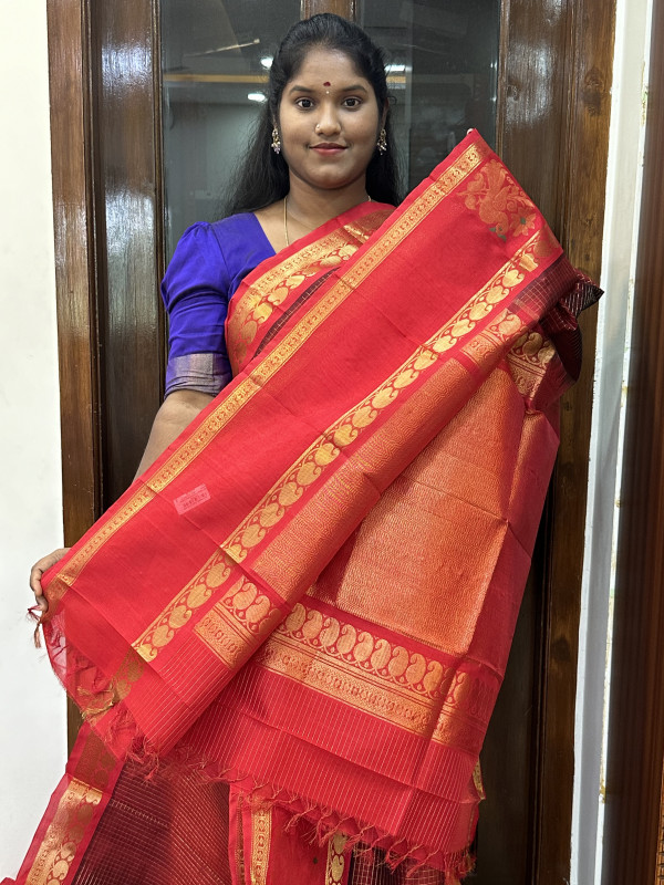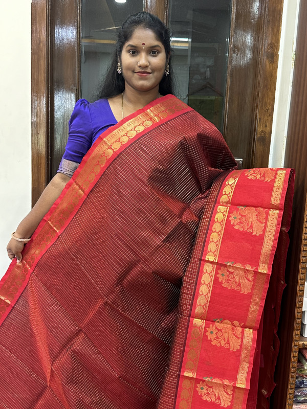 Silk Cotton Zari Checked Side Buttas Maroon And Red(SCZCSB8)