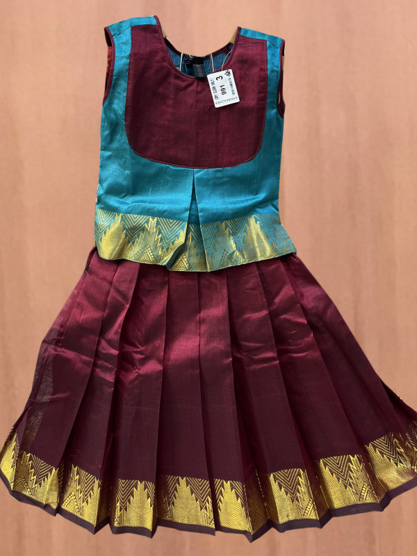 3"Yr"_Kids Pavadai Set Silk Cotton Teal Blue And Maroon(SC3KP9)