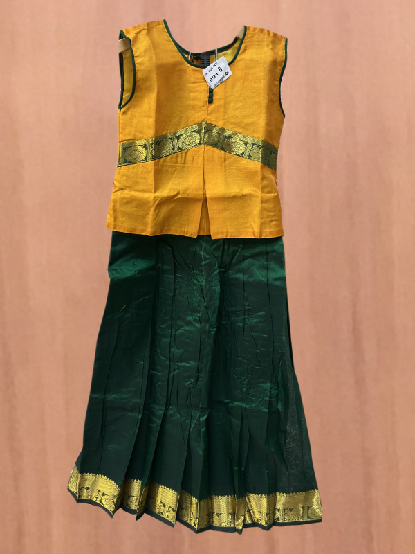 8"Yr"_Kids Pavadai Set Silk Cotton Mustard Yellow And Green(SC8KP11)