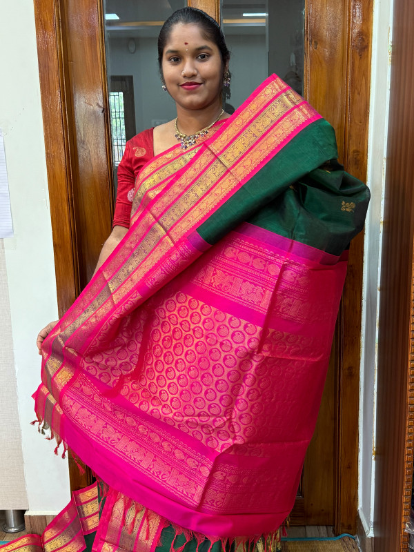 Silk Cotton Korvai Buttas Triple Tone Dark Green and Pink (SCKTTB04)