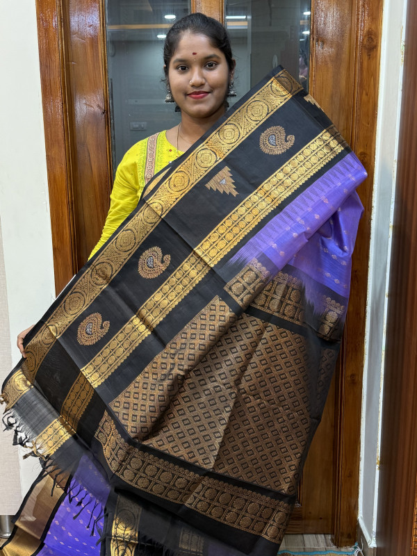 Silk Cotton Kuppadam Buttas Lavender And Black(SCKVB99)