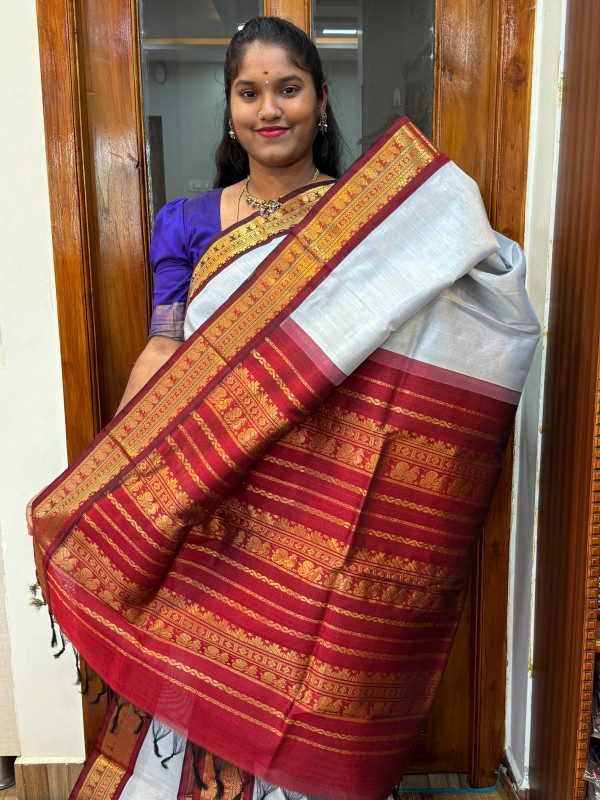 Silk Cotton Korvai Special Light Grey And Maroon (SCKS12)