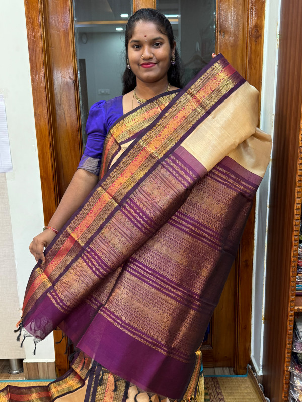 Silk Cotton Korvai Special Beige And Wine(SCKS16)