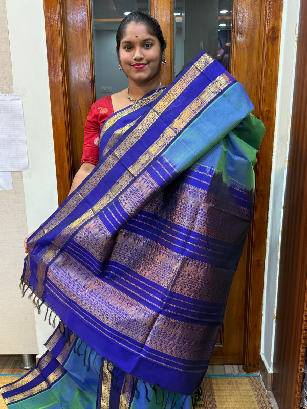 Silk Cotton Rettapet Border Peacock Blue And Violet (SCRB02)