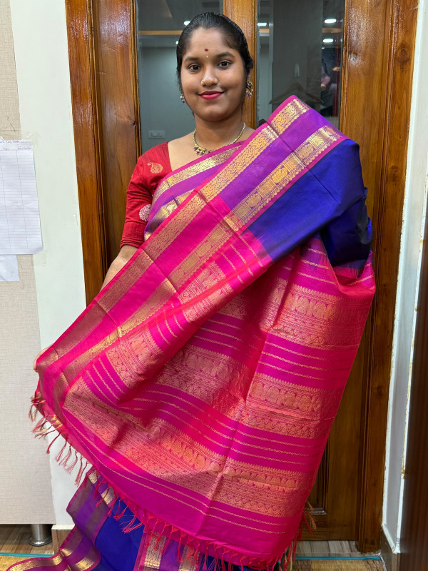 Silk Cotton Rettapet Border Violet And Pink(SCRB03)