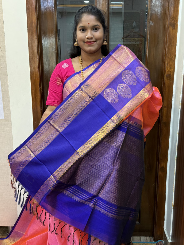 Silk Cotton Kuppadam Thousand Buttas L&S Border Peach Pink And Violet(SCKTBS23)
