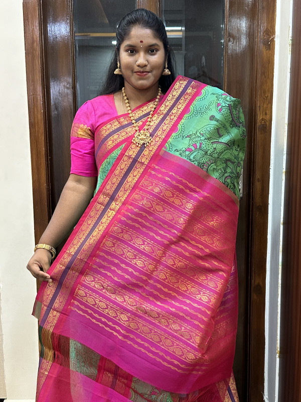 Silk Cotton Kuppadam Kalamkari Print Dual Shaded Teal And Dual Shaded Pink(SCKKP70)