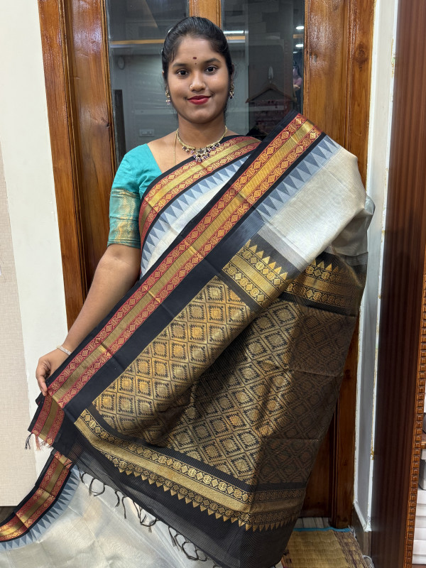 Silk Cotton Korvai Vairaoosi Ash Grey And Black(SCKVTB8)