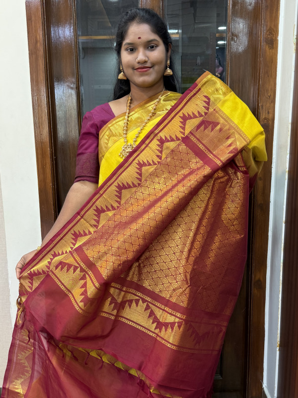 Silk Cotton Medium Body Buttas Yellow And Maroon(SCMBB54)