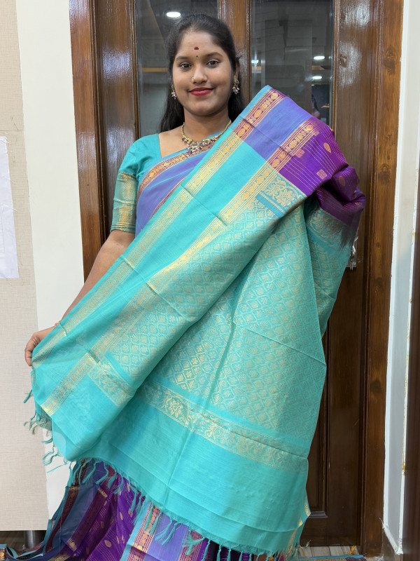 Silk Cotton Checked Buttas Purple And Dual Shaded Teal(SCRBPV96)